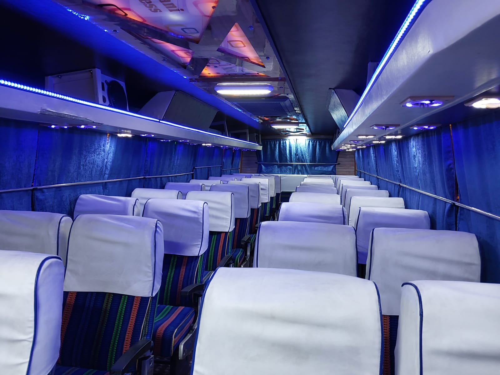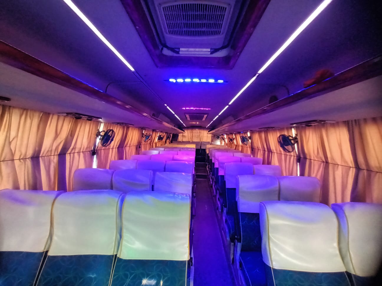 Facility: AC, Pushback Seat, Music System, Ice Box, Frist Aid Box, Luggage Space , USB Ports.